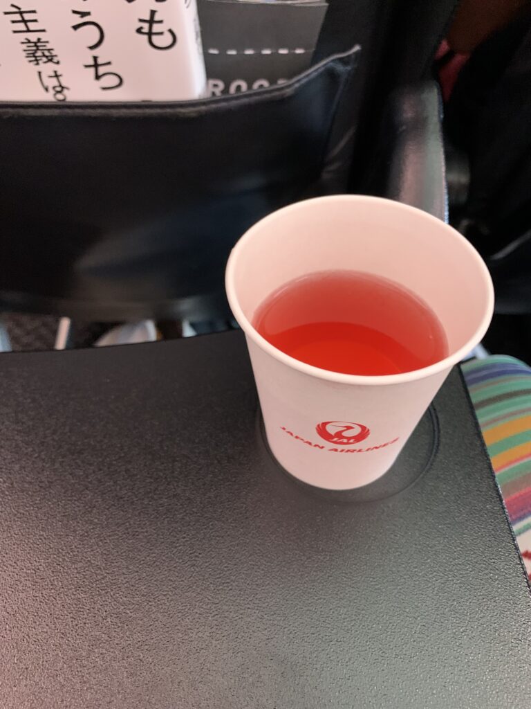 1時間弱のフライトで、離陸と着陸のシートベルト着用時間を除くと、30分くらいか。その間にやはりドリンクサービスがある。JAL特製のジュースがあるそうで、えーと何て言ったかな。ブドウと桃のミックスジュースだったんだけど。スカイダイブ、いや違うか。ん?いいのかな。なんかそんな感じの名前だった気が。