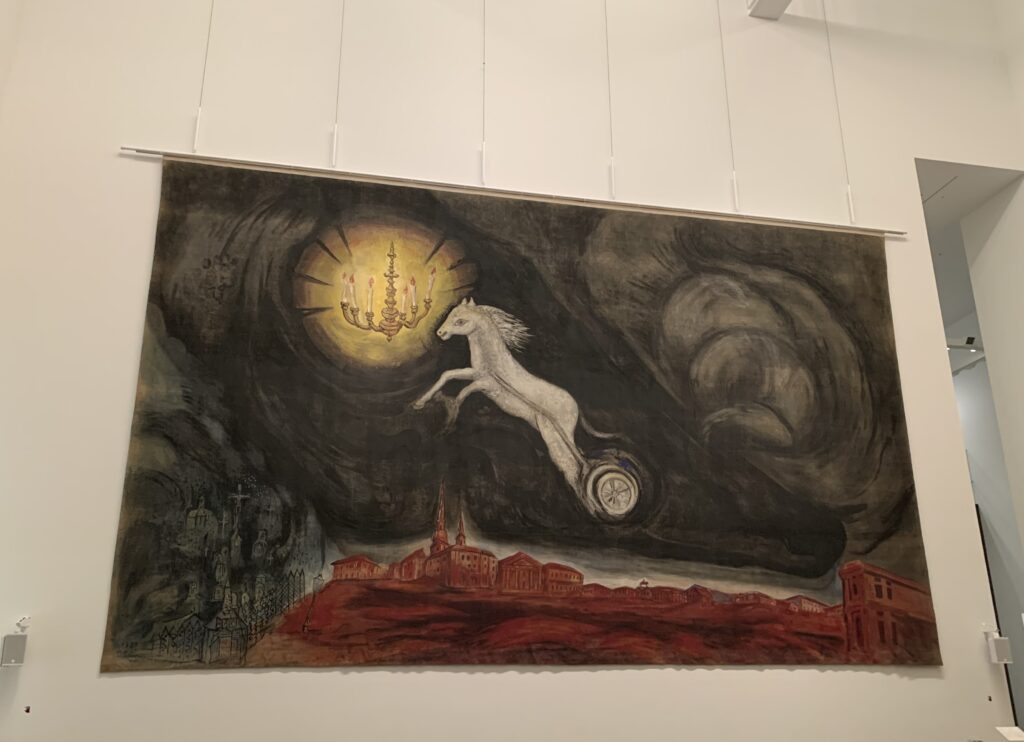 私、企画展が「鴻池朋子展」だと言うから、これらが鴻池さんの作品なのかと思って、シャガールに似てるな、と思ったら、なんとこれは本物のシャガールだった。バレエ「アレコ」の背景画だとか。