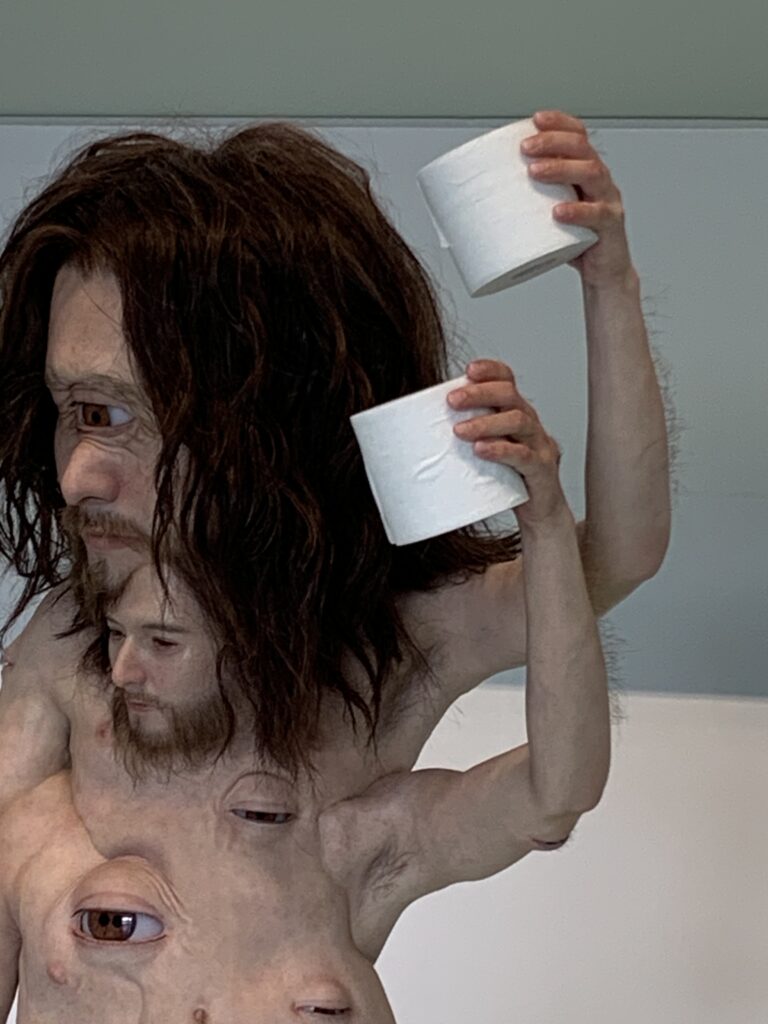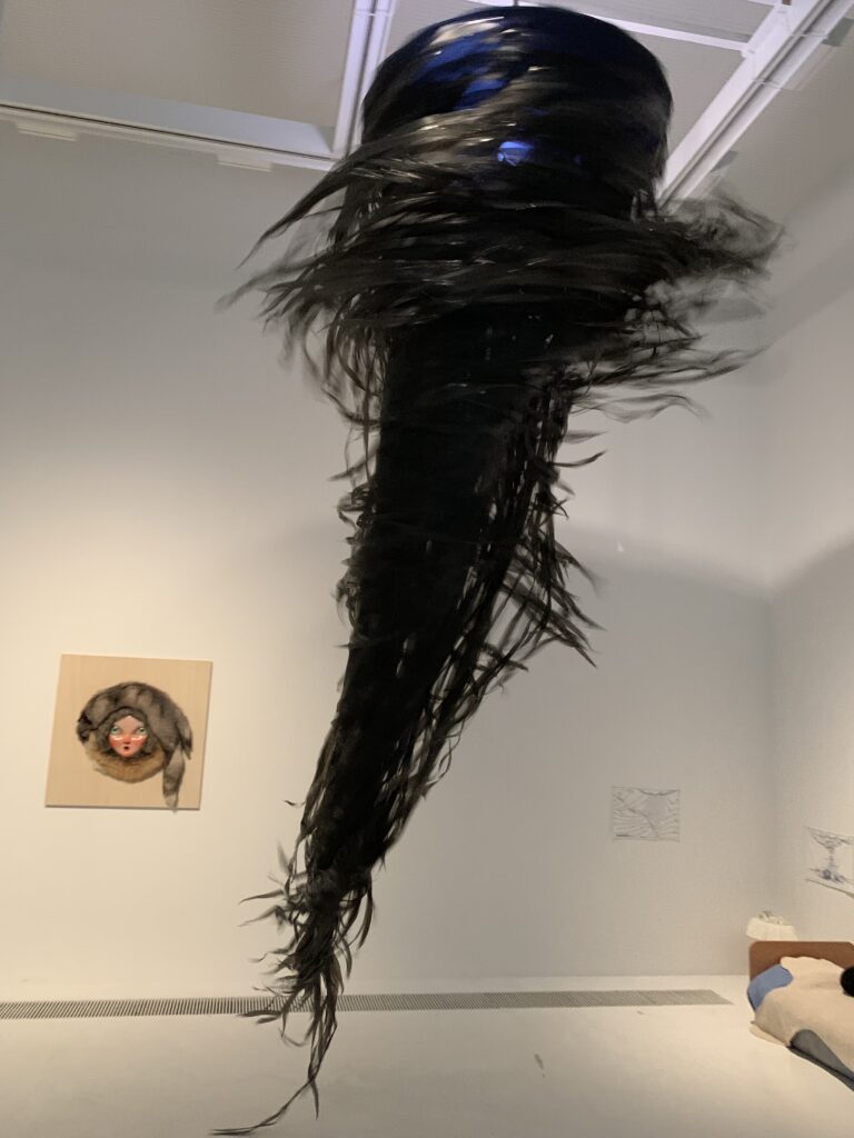 それから、ベッドがたくさんあった部屋は「眠り」という作品で、黒くてクルクル回っていたのは「竜巻」という作品だった。あと、獣が吊られて回っていた部屋は「肺」という作品だとか。よく分からないで見てしまった。あまりにあちこち回されて。回った順序が間違っていたのかな。車いすの後にそのまま鴻池さんの他の作品の方に行けば良かったのかも。でもなぁ。人が要所要所に立っていたから、間違えそうなら言ってくれると思うのだが。難しい。
