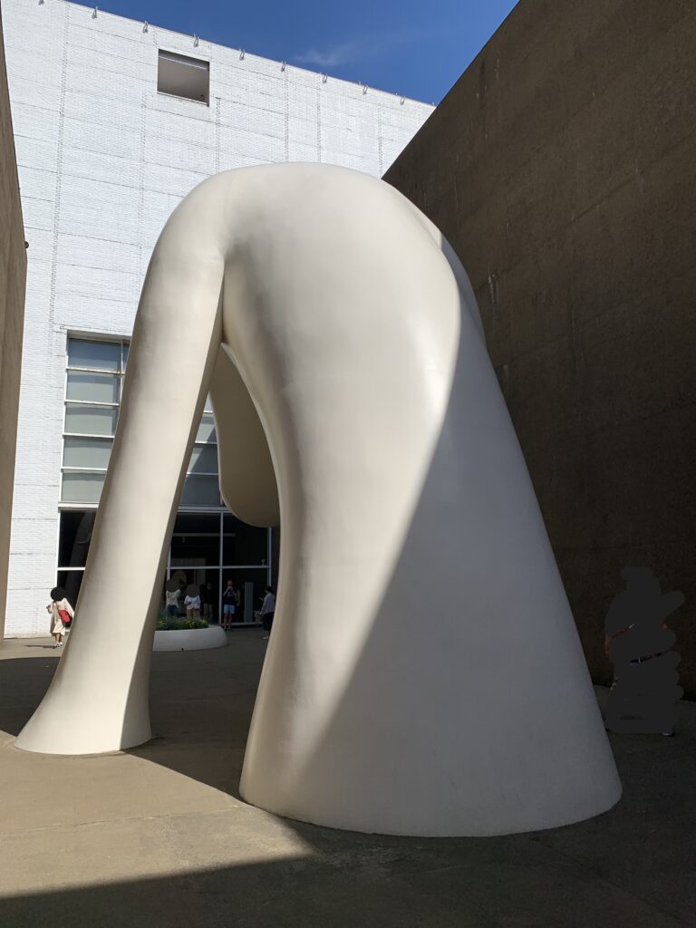 空港から12~3分で青森県立美術館に着いた。日陰は涼しいが、日差しは強い。駐車場から帽子を被って美術館の建物へ。