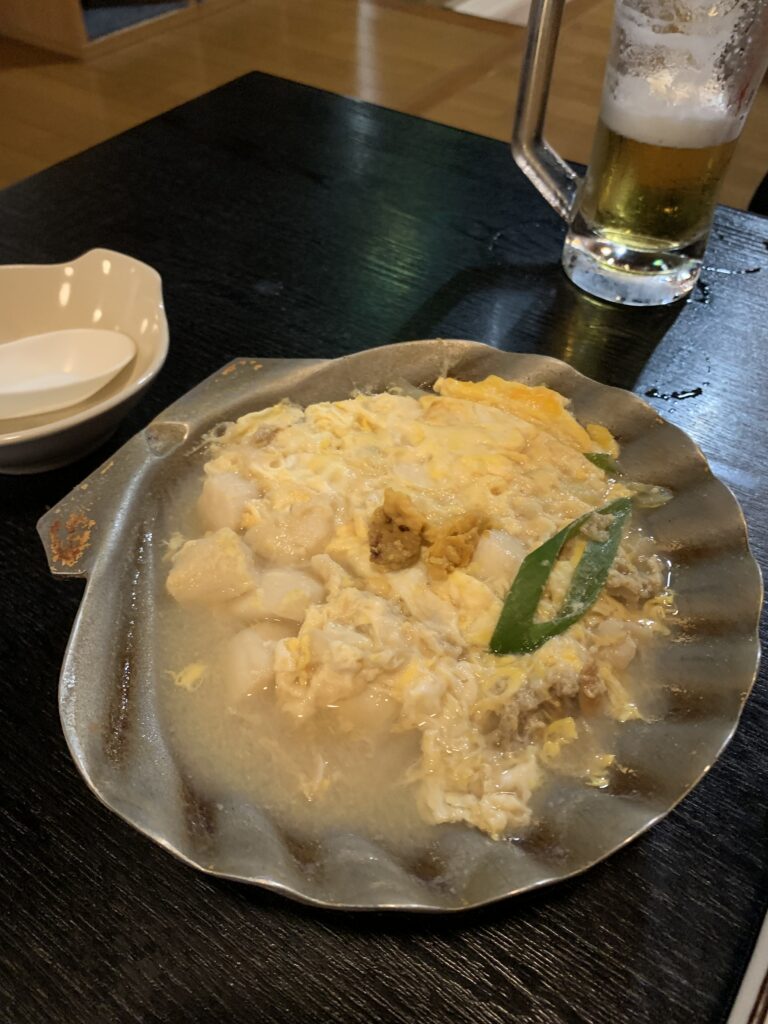 貝焼味噌は、角切りのホタテが入っていた。思ったよりも卵とじっぽくて、優しいお味だった。もっと味噌が焦げているようなしょっぱい感じかと思ったのだが。