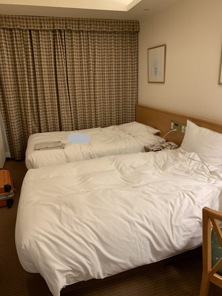 カーテンが閉めてあったが、開けようものなら西日が入ってきてものすごく暑いのだった。そう、後で忘れそうだから今書くが、二日目に部屋を出る時にカーテンを閉めるのを忘れてしまった。幸い二日目はあまり天気が良くなくて曇っていたのが幸いだった。