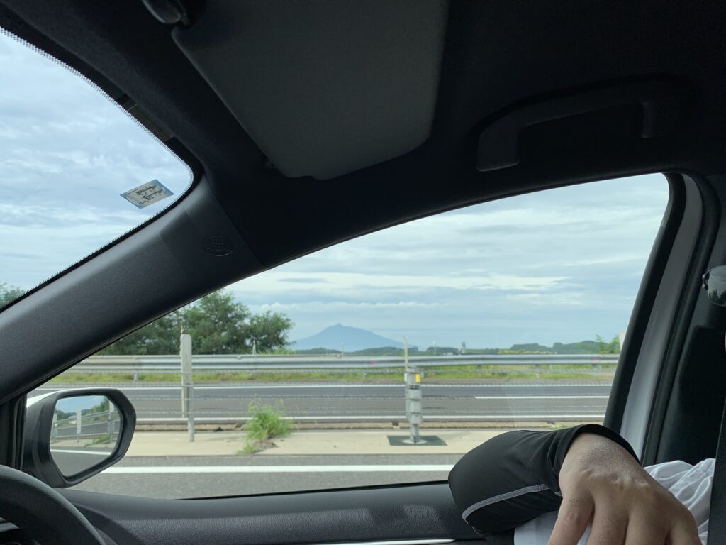 あ、岩木山が見えた!でも、右の方にちょこっと見えただけ。写真に撮ると更に小さい。