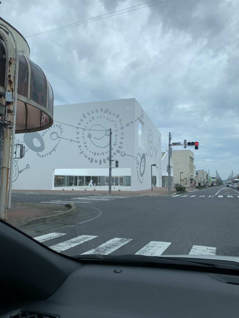さて、すぐ近くにあるはずの十和田美術館だが、美術館の場所は分かっても、駐車場が分からない。美術館の前に戻ってきてもう一度駐車場の矢印を見て進むと、けっこう遠くにあった。