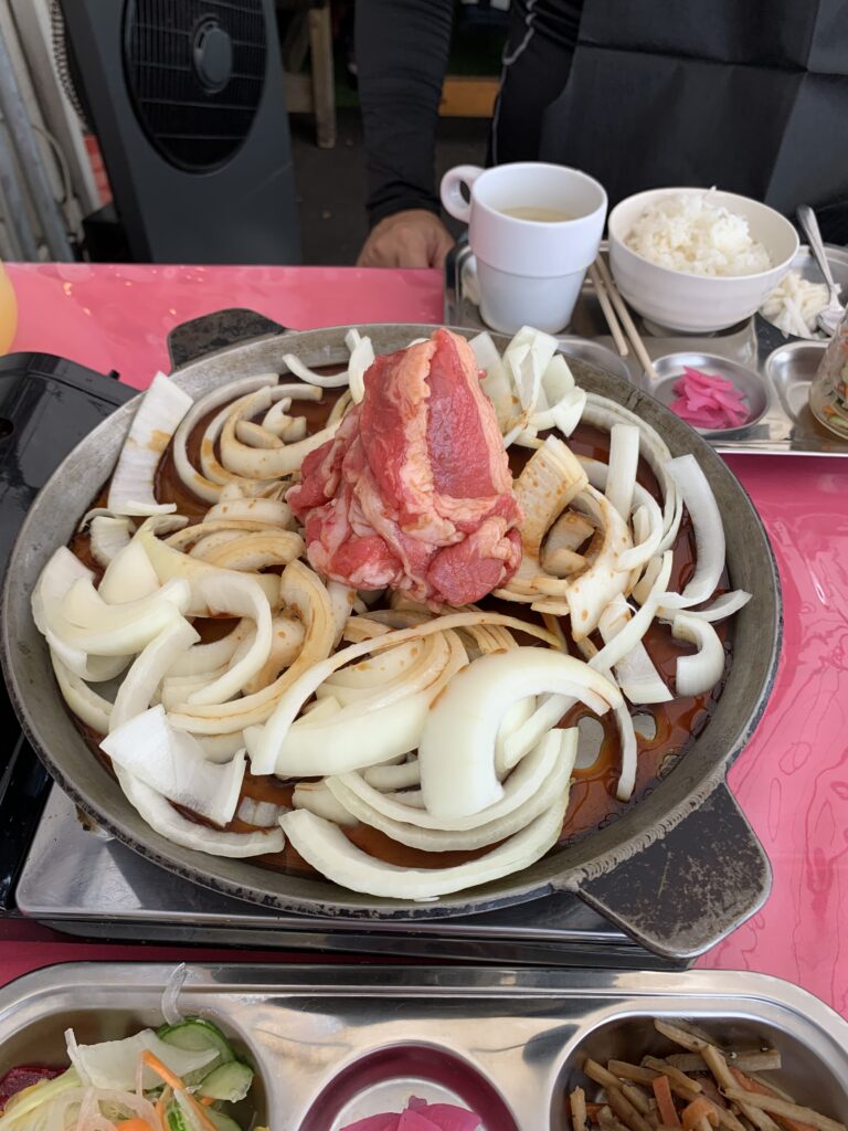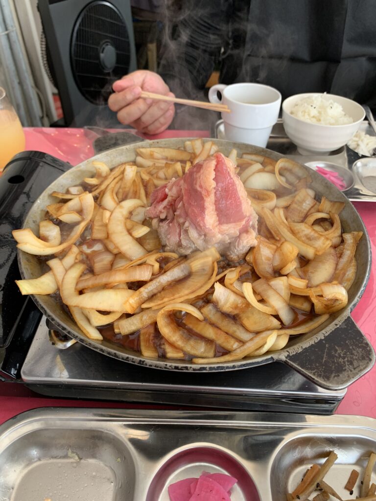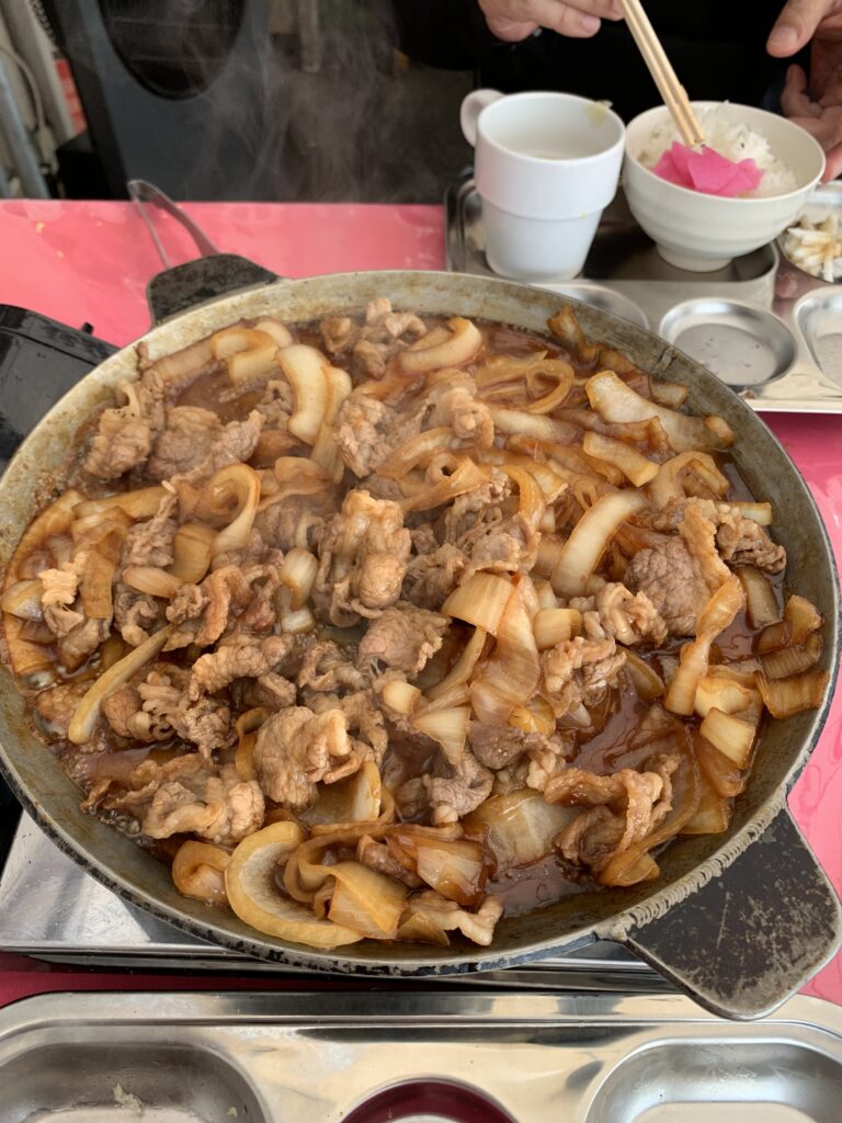 あ、バラ焼だから、バラ色の……そういう事なのか?ちなみに、店内に流れているのは90年代のJポップスだった。店長の趣味だな。