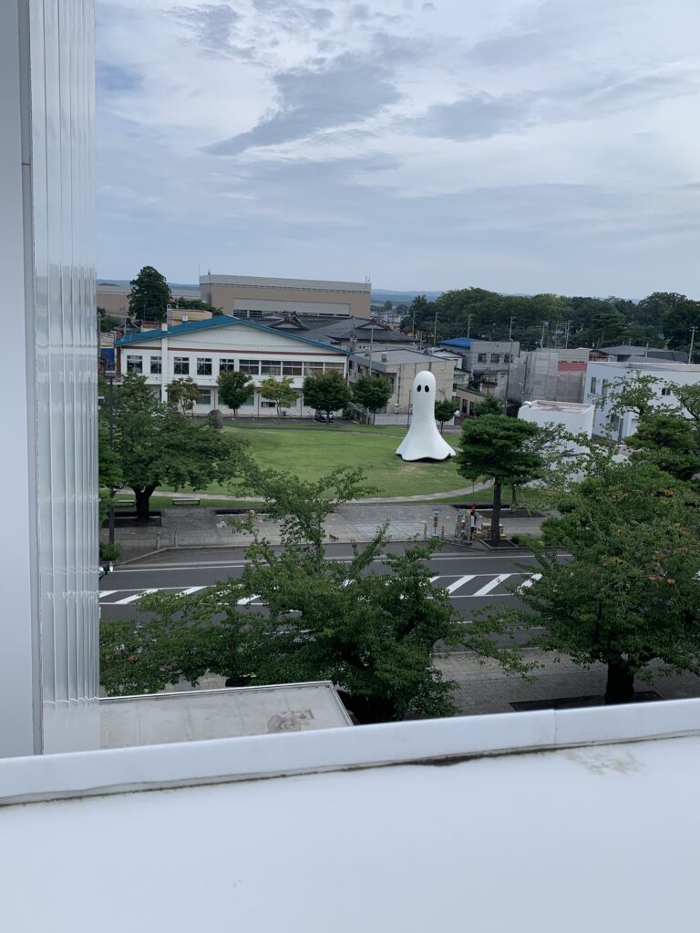 あ、あいついた。「ゴースト・アンノウン・マス」(インゲス・イデー)だって。あ、さっきの街中で見かけた鉄骨のやつ、「商店街の雲」という日高恵理香さんの作品だったらしい。