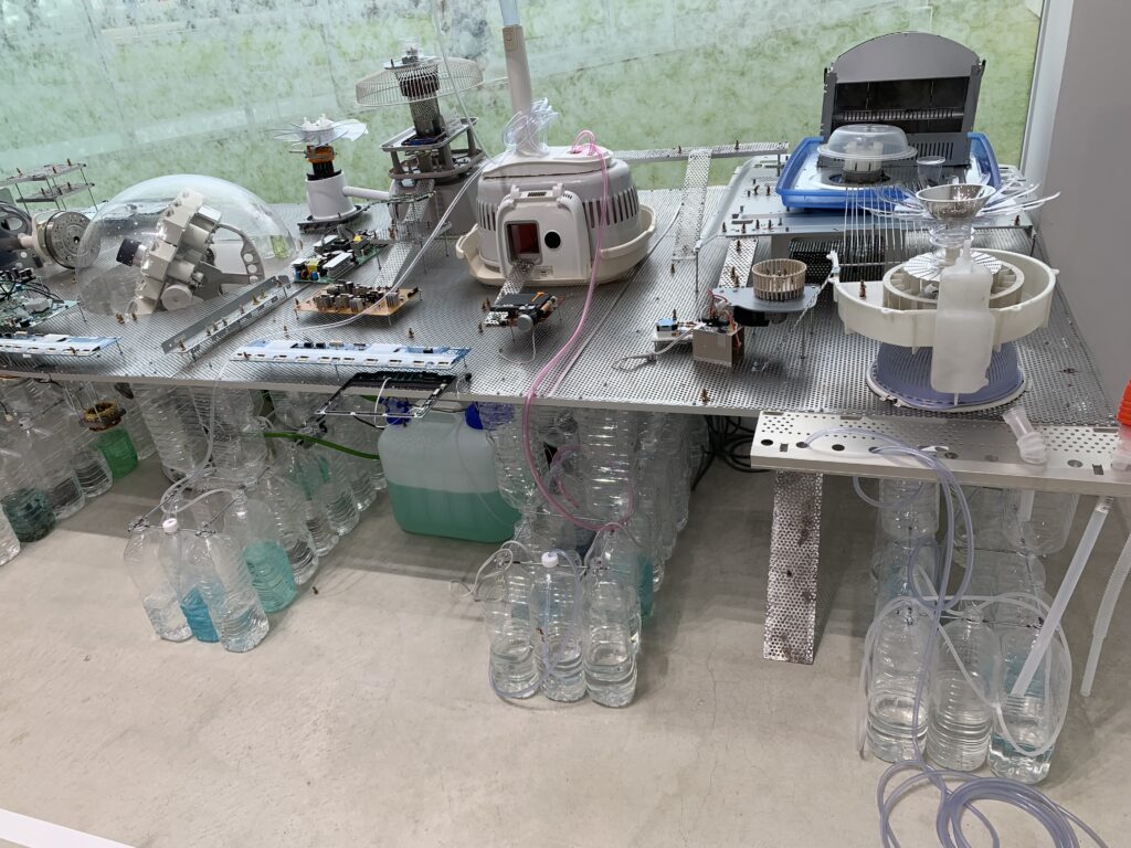 丹羽海子「メトロポリス・シリーズ:太陽光処理施設」という作品だが、大きい。どっちが先なのか、施設があって、そこにはたくさんの人がいる、かと思いきやよく見るとコオロギたち。