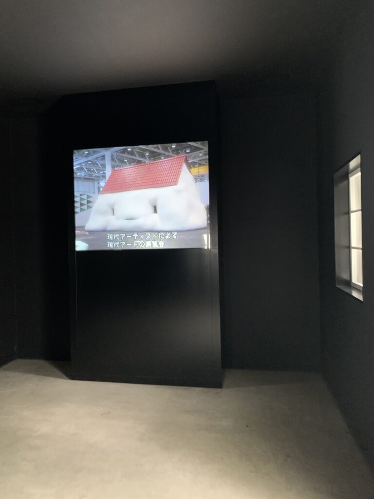 中は教会っぽい雰囲気。映像が流れており、実際にこのハウスがしゃべっている様子が。中から入り口の方を向いた感じはこちら。