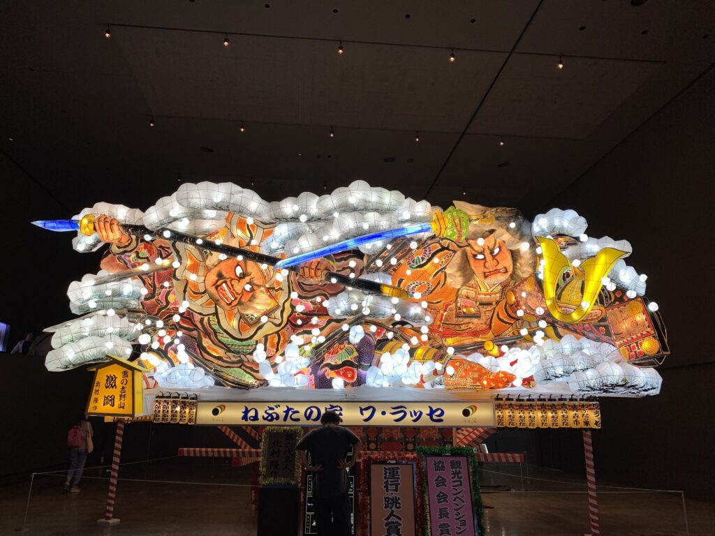 駐車場に車を停め、中に入ってチケットを買った。ねぶたについて学べるという事で、色々と展示があった。ねぶた祭りは、どういう経緯で始まったのかが分からないそうだ。いつ誰が始めたのか。竿灯まつりなんかも同じ流れなんだとか。