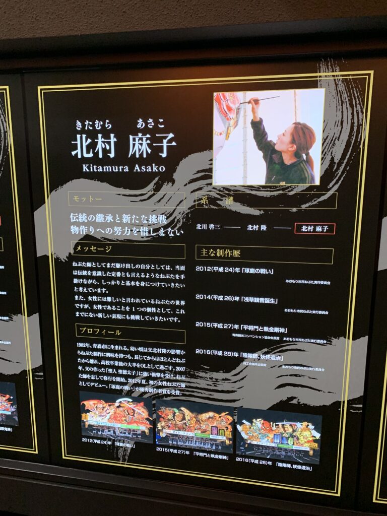 優勝とかあるみたいだけど、最近の優勝は二人のねぶた師が交互に獲ってる感じ。そのうちの一人が女性だったんだけど、何と女性のねぶた師第一号なんだとか。この方。
