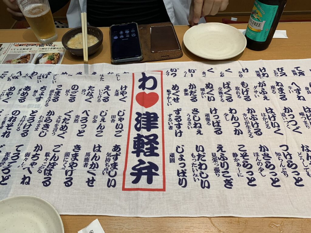 津軽弁か。みなさん、あまり話してくれなかったな。隣でしゃべっている人達も標準語だし。リンゴジュース売っていた人はちょっと訛りがあったけど、頑張って標準語を話している感じだったし。