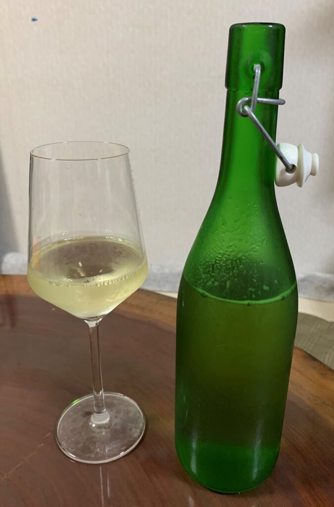 こちら、常温で飲むのがオススメ。最初の一口はものすごく香りが良く、辛口なれど甘みや奥深さも感じる。生ワインなので若いのだが、薄く感じる事は無い。