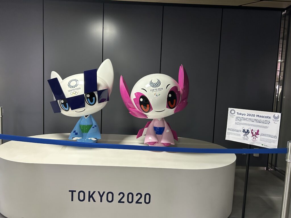 ミラソメの像や、デフリンピックの看板も。