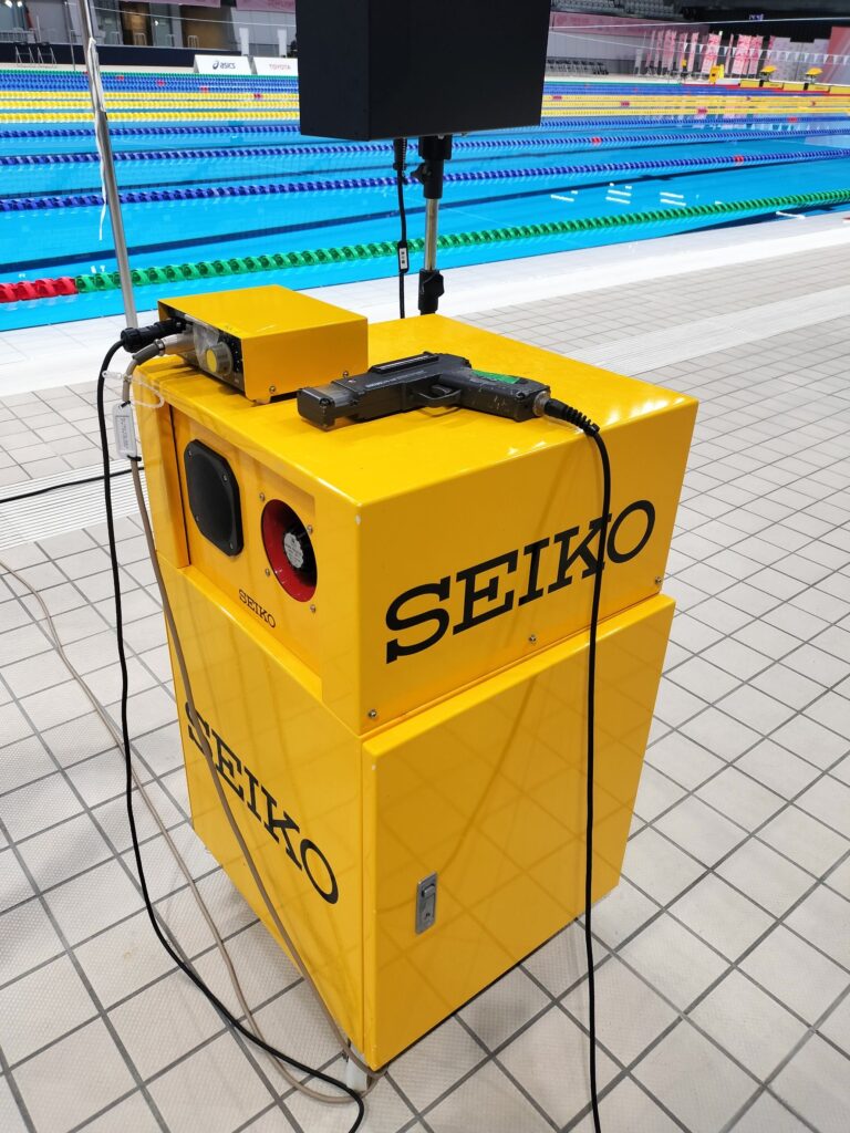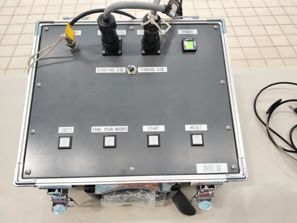 それで、スタートランプを操作する機械があって、光るところの写真が撮りたいと友達が言っていて、まさかそれは無理だろうと思った。だが、聞いてみたら快くランプを点けてくれた。すごい。なるほど、水泳ボラが楽しいというのが分るな。