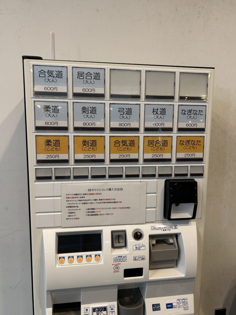 そういえばこれ↑。玄関の所にある自販機。前日に話題になったのが「居合道」だ。どんな武道なのだろうと。私はちょっと聞いた事がある気がする。きぇー!とか言いながら相手と対峙するような?だとしたら、勝敗はどうやって決めるのだろう。