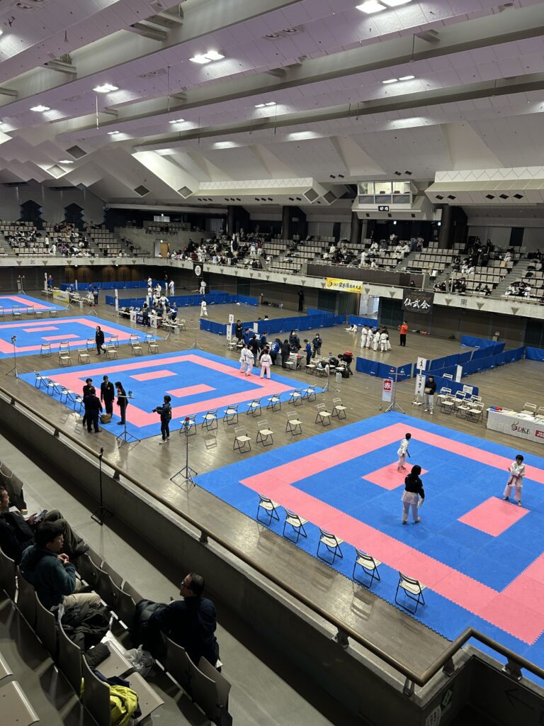 客席を歩き、続いてアリーナを歩く。アリーナには主催室があり、スタッフさんがどこぞのおじ様と名刺交換をしているのを目撃した。スタッフさんのうち2人は、スーツを着ていた。審判服かな?かっこいい。