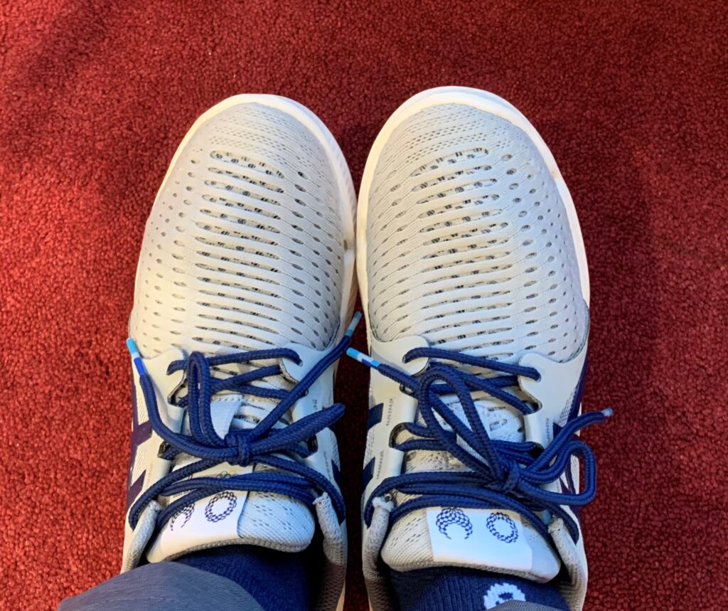 この靴、足の甲の部分がメッシュになっていて、通気性が良い。蒸れない。家を出た瞬間から風の通りを感じて涼しかった。雨だと靴下が濡れてしまうのでは?と思ったが、とりあえず小雨なので大丈夫だった。