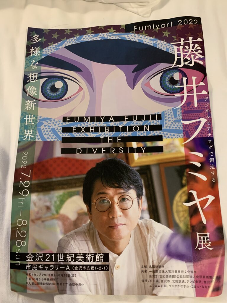 目の前には、人気スポット21世紀美術館がある。なぜ人気かと言うと、体験型ミュージアムだからだと思う。子供連れとか、カップルだったら楽しいだろうが、一人だと虚しいだけだと思い、素通りするつもりだった。だが、特別展「藤井フミヤ展」がやっていて、今ここでしか見られないとすれば、見ておく方がいいかも・・・とチラッと思っていた。