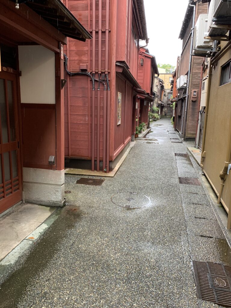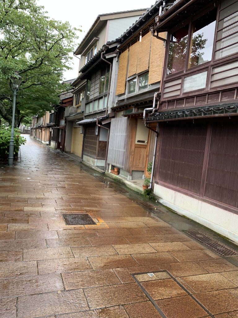次にひがし茶屋街の方へ歩く。雨がけっこう降っている。