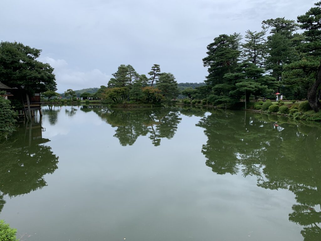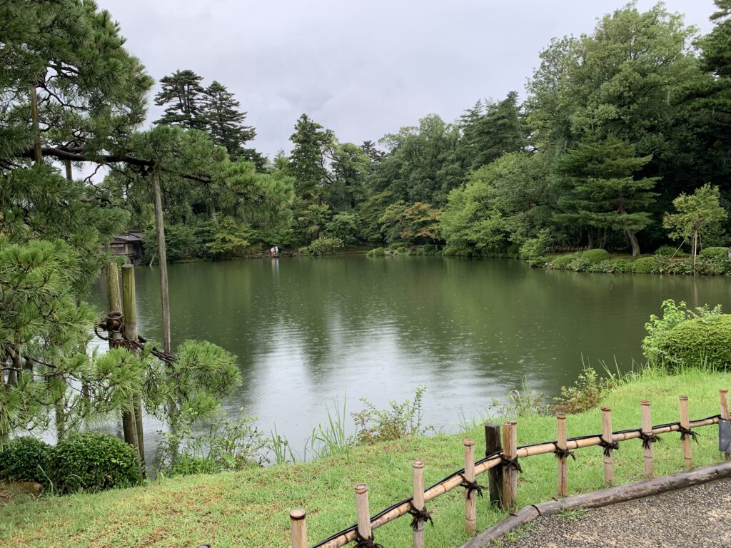 雨はちょっと降ってきたり、止んだりしていた。兼六園は大きな木があり、水があり、その水がとっても綺麗で透明で、魚もいた。展望台からは山と雲の幻想的な風景が。やっぱり山の上だな。