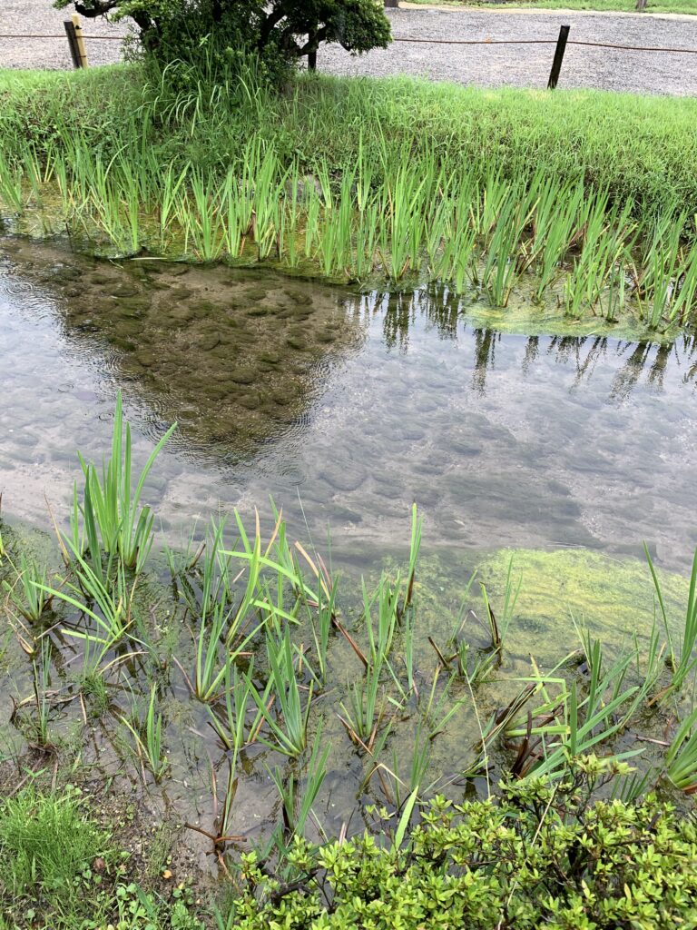 地図はあるんだけど、どうも道がよく分からない。結局ぐるぐる回って、またさっきの茶屋の近くに出てしまったり。丘だから、兼六園の中にも階段や坂がたくさんある。でも、階段を頑張って上がったら、そこにも池があって、それがまた美しかったのでよしとしよう。