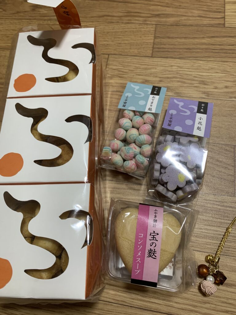 人もたくさんいる。ここで、「麩」のお菓子や「水引」の飾り物などを購入。気に入った物を買った後は満足感があって幸せ。