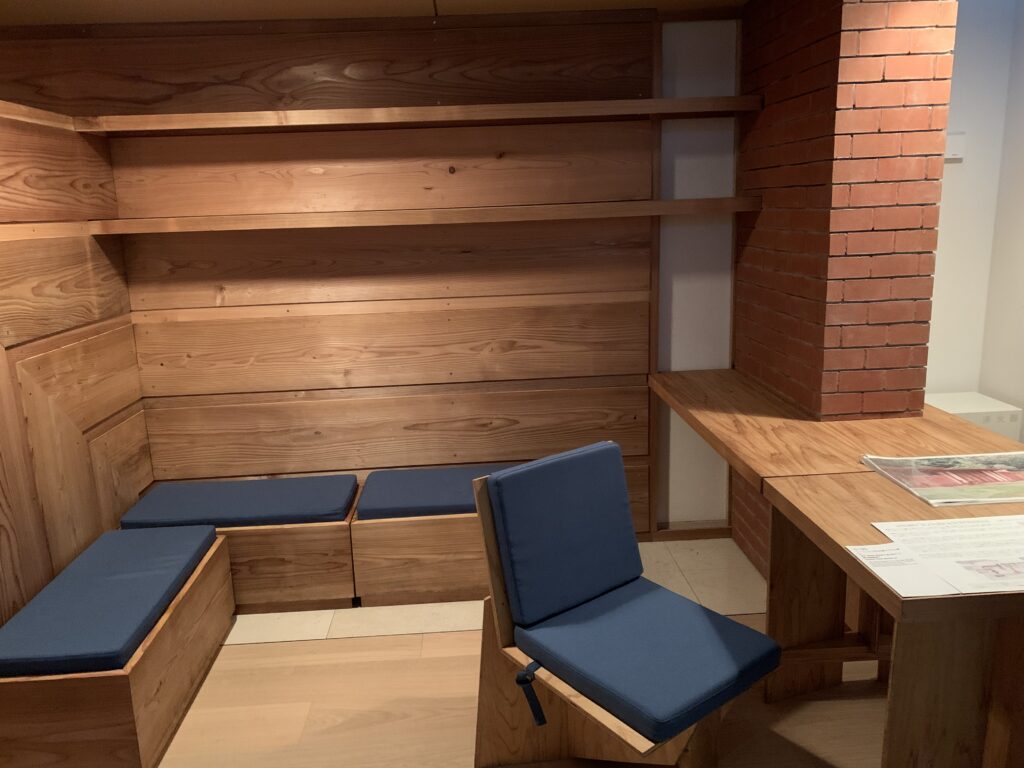 でも、いくつかライトが描いたもの、設計したものが、歌川広重の江戸百景などにすごく似ている、という発見はできた。また、浮世絵を飾るスタンドなどもあった。