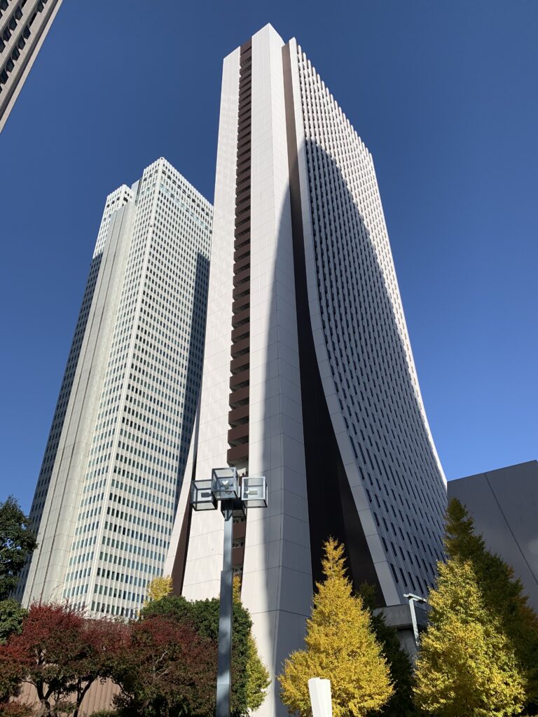 ちなみに、左を見るとこれ。新宿のビル群の中でも特徴的な形のビル。これがモード学園コクーンタワーとう物だったのか。