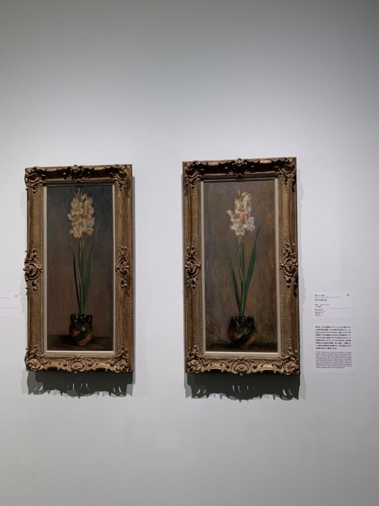この形。掛け軸っぽいであろう。ジャポニズムの影響らしい。この絵には対があって、2枚並べてあった。
