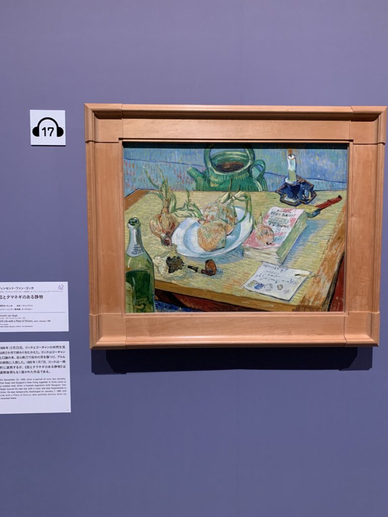 そして、こちらはゴッホらしい色合いの静物画。「皿とタマネギのある静物」