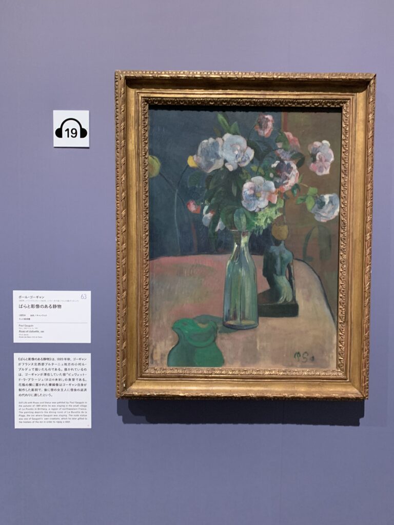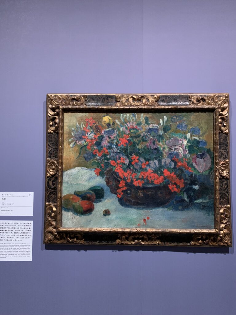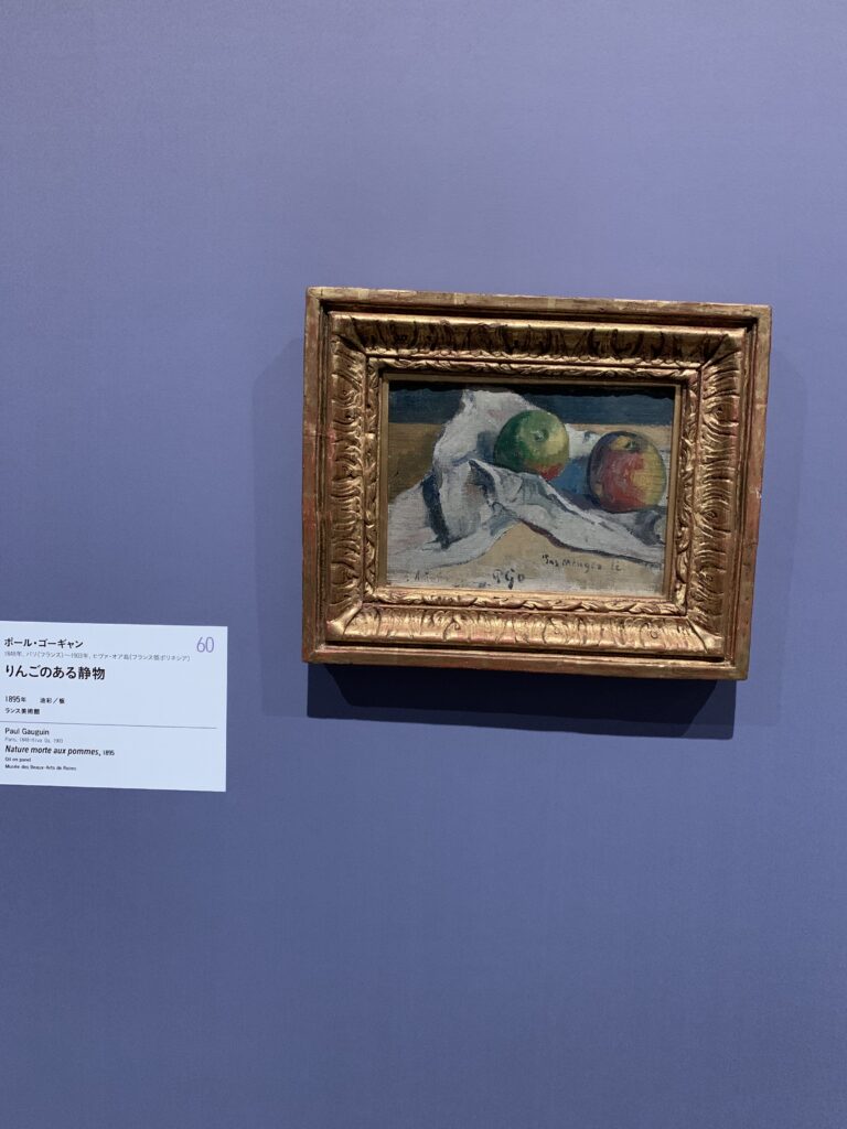 ↑ポール・ゴーギャン「りんごのある静物」。こちらもゴーギャンらしい色合い。赤の隣に緑があるとゴーギャンだよね。