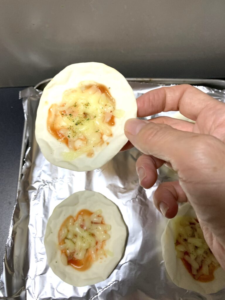 トースターで焼く。1200ワットなら3~4分(季節による)