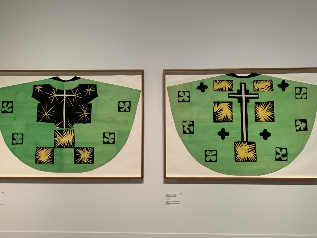 また、日本の匠の為の衣装、とされる衣装には、梅の花をモチーフにした模様があるが、どうも金髪の三つ編みを結ったものに赤い帽子、というのが全然日本っぽくない。だが、梅の他にも松のような模様や、陶磁器によく付いている模様をくっつけているようなところも。面白いというか、可愛い。マティスっぽい感じは出ていた。