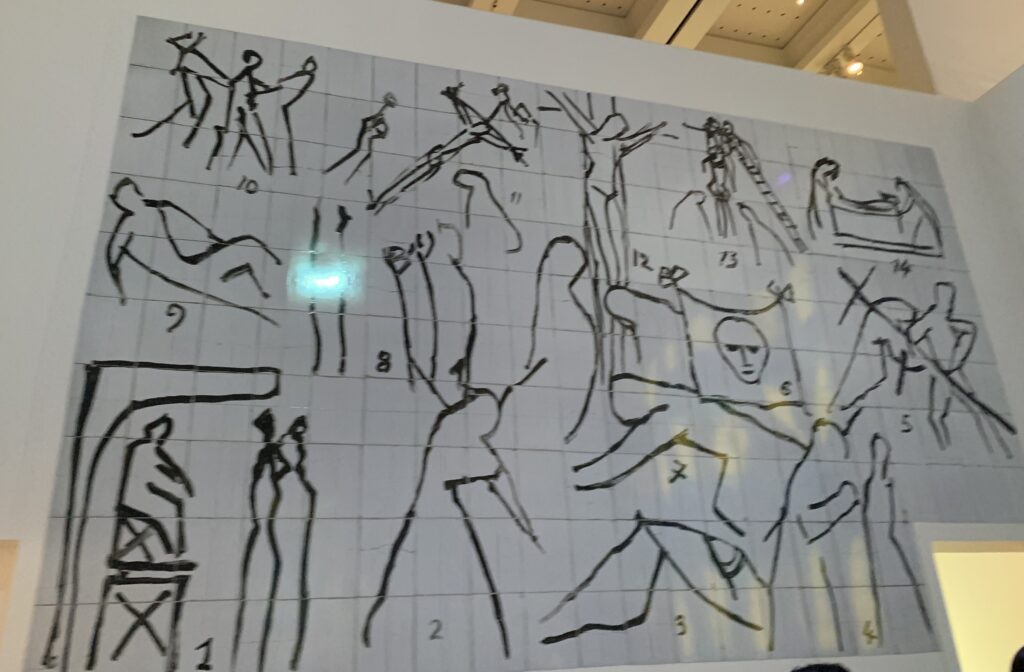 お次は壁画だ。アメリカのバーンズ財団から依頼を受けた装飾壁画は、ダンスを主題とした15m超の巨大壁画。このダンスは、東京オリンピック2020大会で使われたピクトグラムを思い出させる。女性なのはわかるが、顔などは無し。ダイナミックな動きを連続させた模様。それが、いくつもの色パターンで展示されていた。私はグレーが好きだったが、公式サイトやミュージアムショップで扱われるのは3色くらいのやつだ。