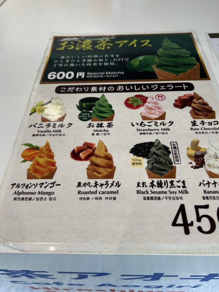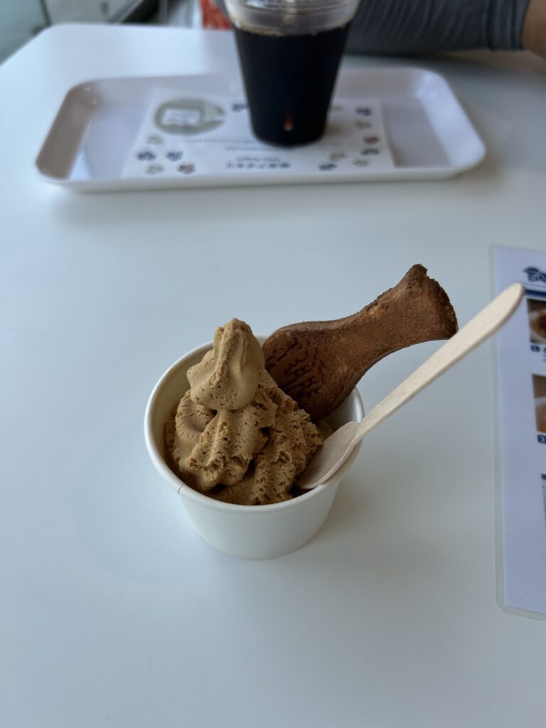 焦がしキャラメルを選んだ。ジェラードはあまり甘くなく、さっぱりしていた。カップにしたのでコーンやワッフルはなしだが、しゃもじ型の甘いおせんべいが付いていて、これも美味しかった。