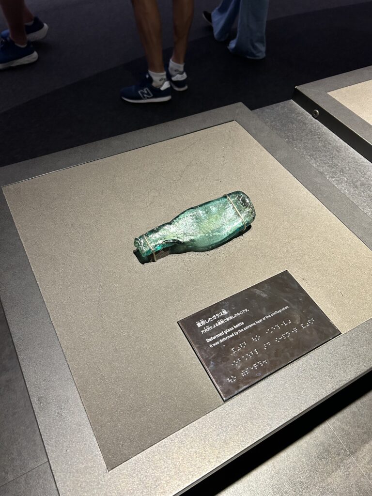 次は被爆者ゾーン。被爆者の遺留品がたくさん展示してあった。見た事のある物も多い。そして、人が多い。あまりに詰まってしまうので、ちょっと飛ばしながら。そうやってじっくり見てくれるのは嬉しいと思う。ここは、外国人も多いが日本人もけっこういる。若いカップルもいるし、お子さん連れの家族も。