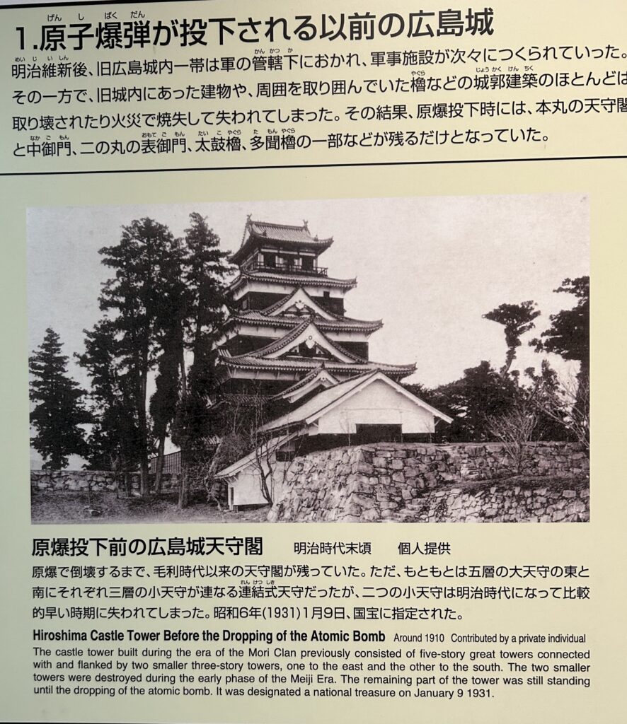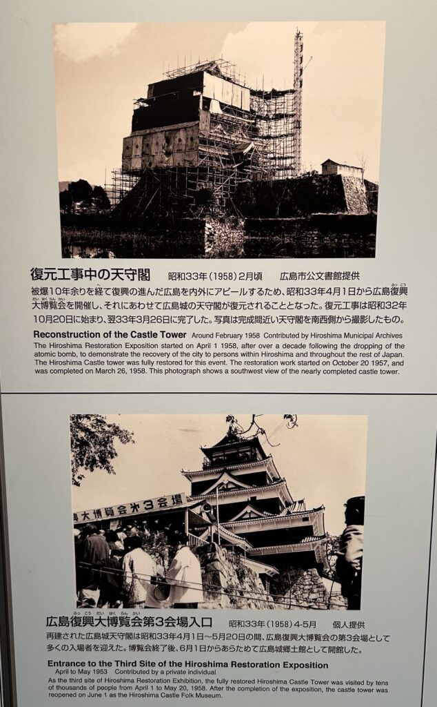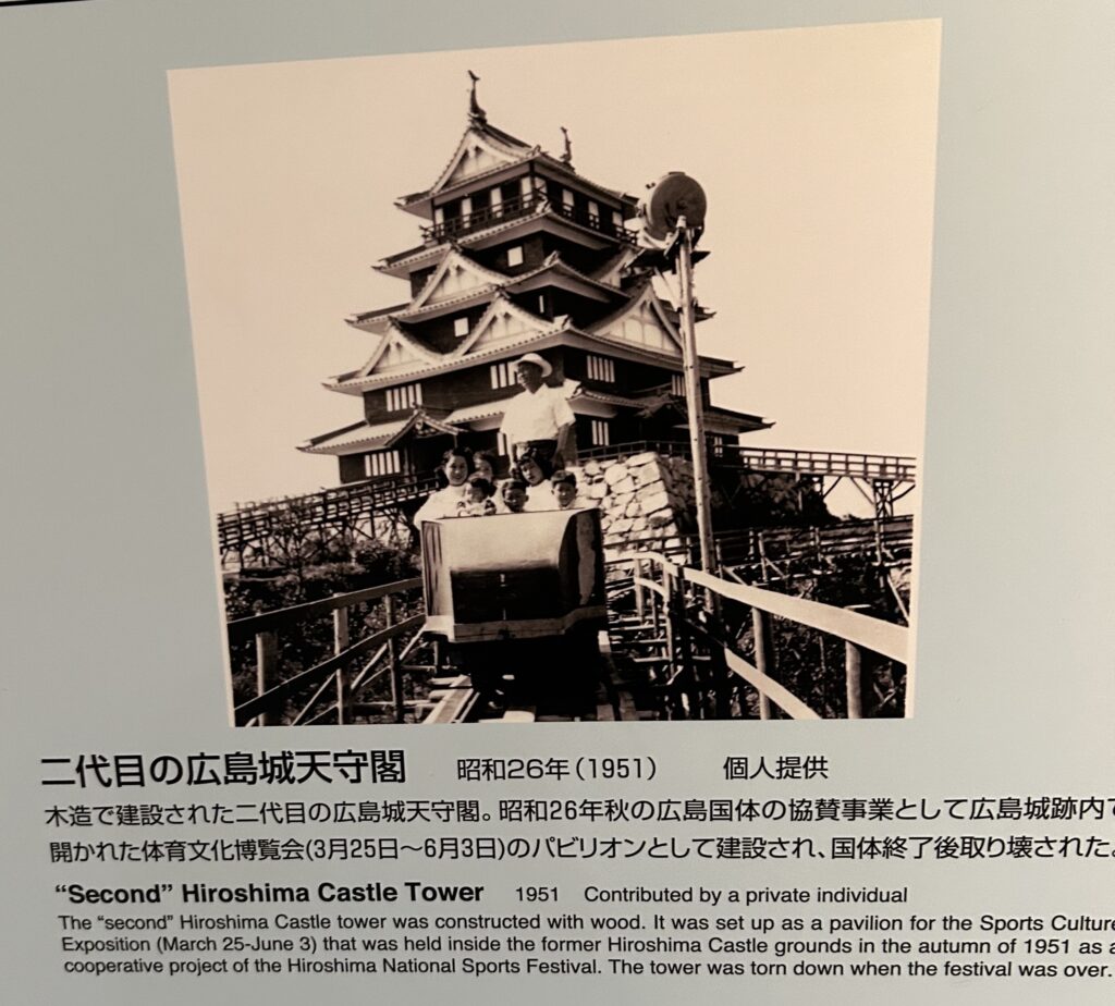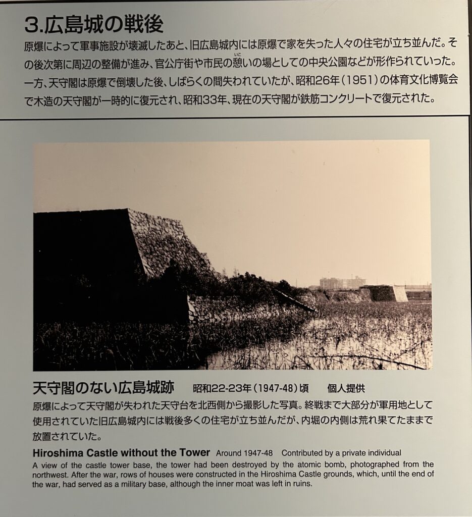 私が興味を持ったのは、広島城が原爆で焼失し、その後2度の建て替えが行われたなどという写真。