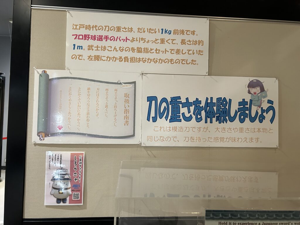 1階上がるごとにテーマが変わっていく。最初は広島城が作られた経緯とか、毛利家の話で、次が出土した茶碗や色々な道具があったり、後はなんだっけな。そう、日本刀の展示。鍔(つば)の展示とか。色々な趣味の人に対応すべく、という感じ?