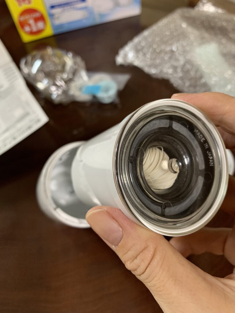 この、外すのが大変だと思っていたのだが、やってみるとそれほど力は要らなかった。ただ、思った以上に汚れていてへこむ。こんな浄水器をずっと使っていたなんて!