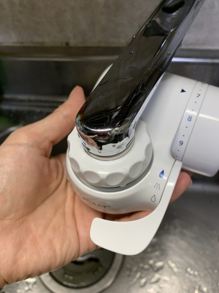 あら簡単。付けられた。ちょっとドキドキしながら水を出す。
