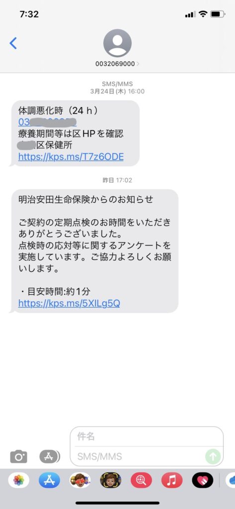 保健所からは、他にもショートメールは来ていた。けれども、こちらも本物だと思い込んだ。だって、今まさにコロナに感染して保健所からの連絡を待っている最中だったのだ。連絡はなかったけれど、このショートメールが来たおかげで、繋がってるんだ、体調が悪化しても、ここに電話すればすぐに保健所のアドバイスがもらえるんだ、と思って安心していたのだ。