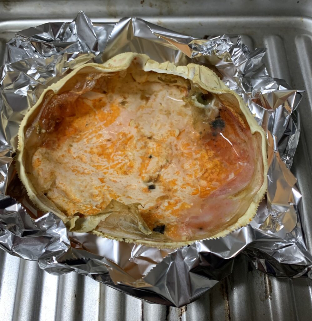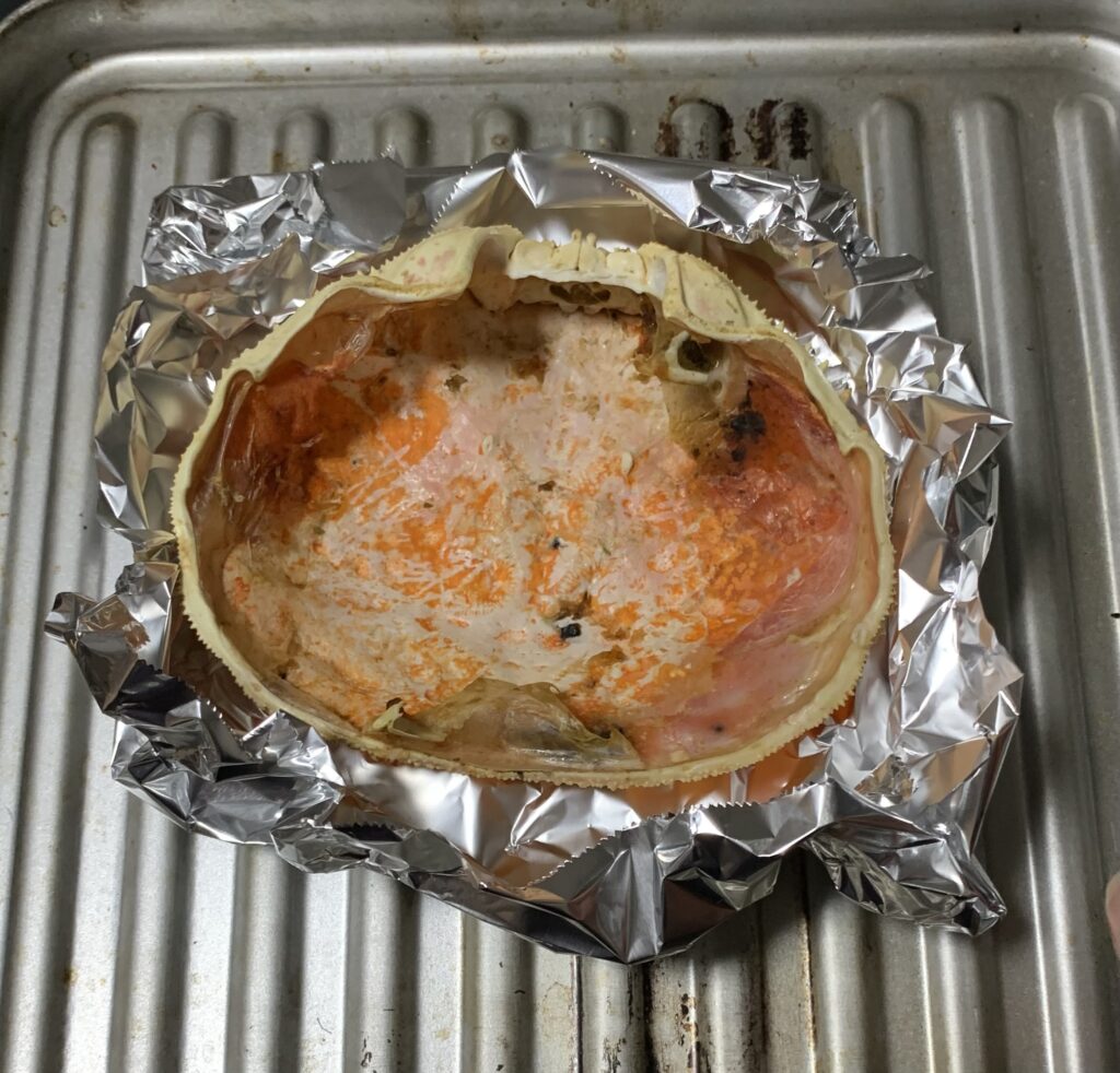 いやいや、その前に一言。焼いている間に、普通にカニ味噌を食べ、酒を飲んだ。ウマー!合うなんてもんじゃない!いや、合う。カニの足もほんのり甘くて美味しいけれど、味噌や、味噌が混じっている身の方がより酒に合って旨い。