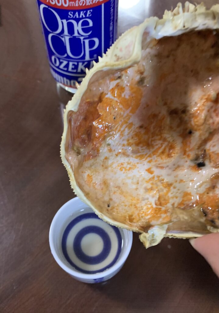 以上、カニの甲羅酒レポであった。あまり参考にならなかったかもしれないが、一つ言える事は、大関のワンカップがめっちゃ美味しかったという事。ナニコレ、カップ酒とは思えん。なんにでも合う気がする。夫も普段日本酒は飲まないが、カニと合うよと言ったら飲んだ。そして、