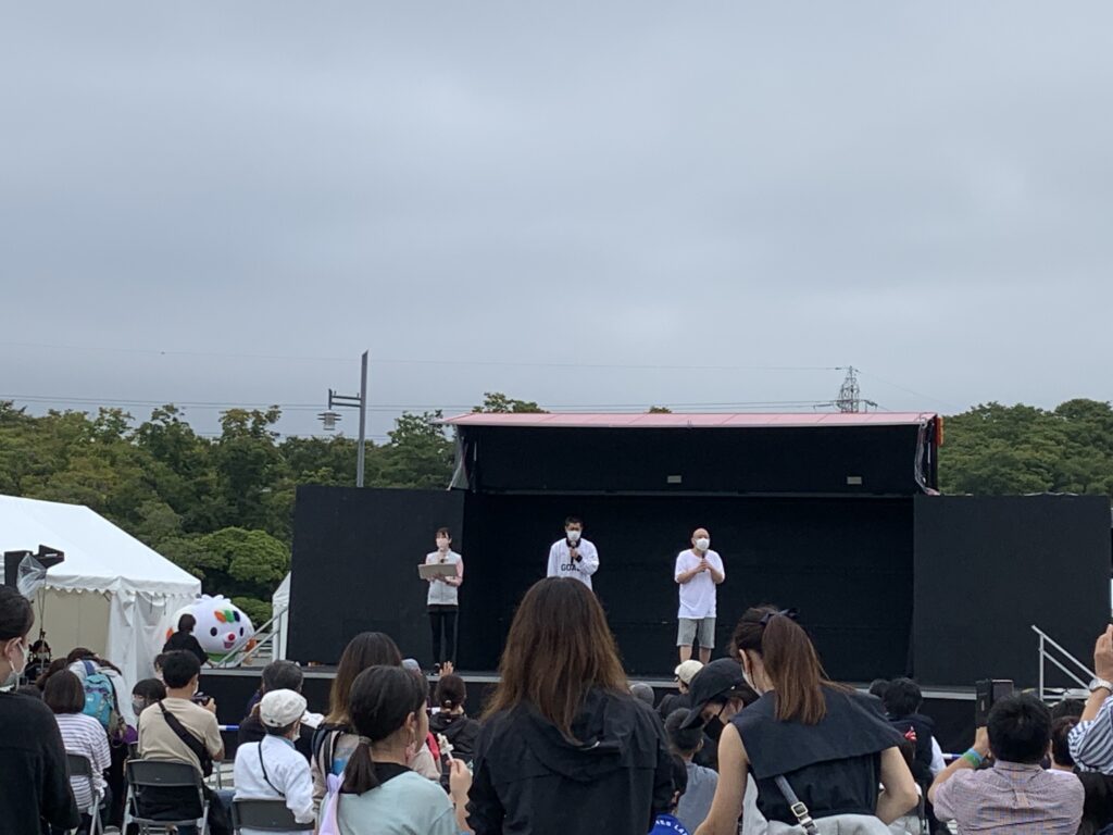 そして、ステージにパンサー尾形がやってきた。YouTube配信もされるステージだそうだ。遠くから見ているし、尾形さんはマスクもしているし、なんかよく分からなかったけど。ラグビーの基本を一緒に福島さんに教えてもらおうというステージだったようだが、もうすぐ休憩時間も終わるし、また持ち場に戻った。