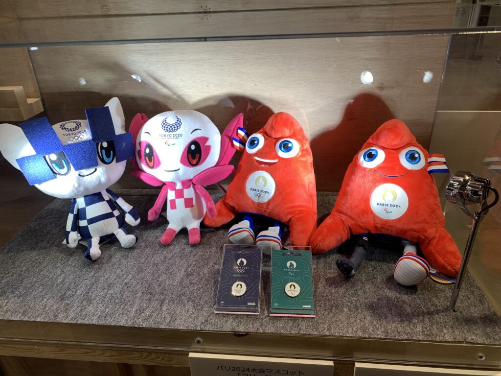写真、開会式などの衣装展示、そして聖火リレーのトーチ。トーチを持ってもいい、というのも何度目か?ボランティアさんがテンション上げて、