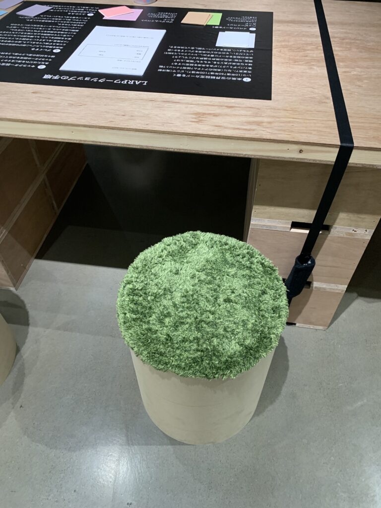そこに置いてあった椅子。なんて可愛いんだ。欲しい。緑の部分はまるで芝生のように見えるが、触ってみたら絨毯のような感じだった。