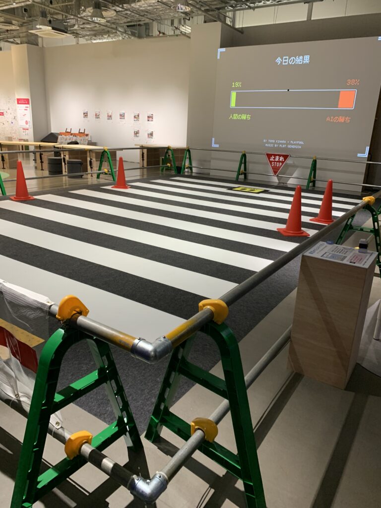 AIに見つからないように向こうへ行くというものらしい。どうやったらAIに歩行者として認識されずに通れるか。子供が丸くなって、ちょっとずつ進んでいたが、最後には見つかってしまったようだった。これもまた、AIが学んでいく材料になるわけだよね。