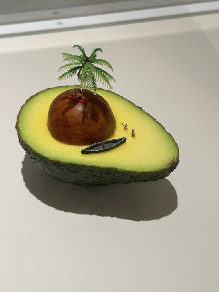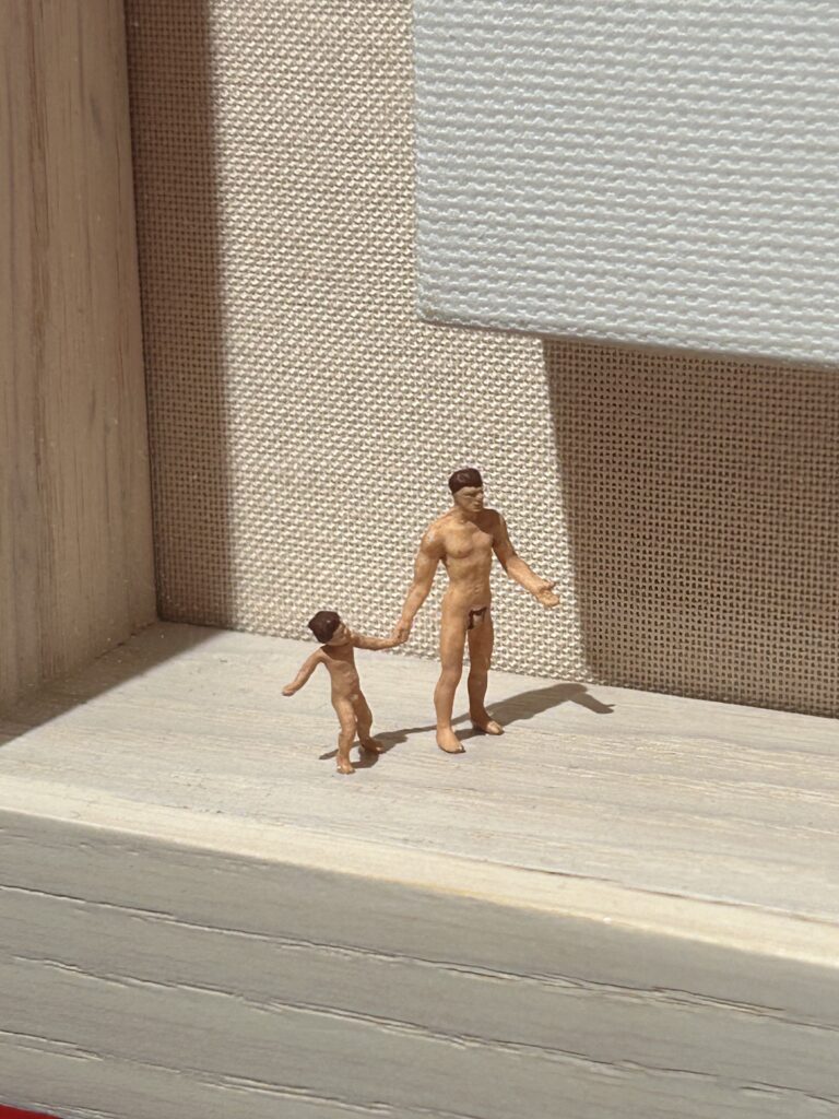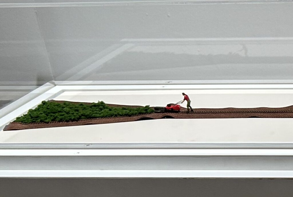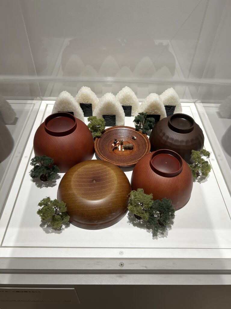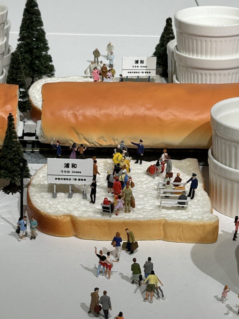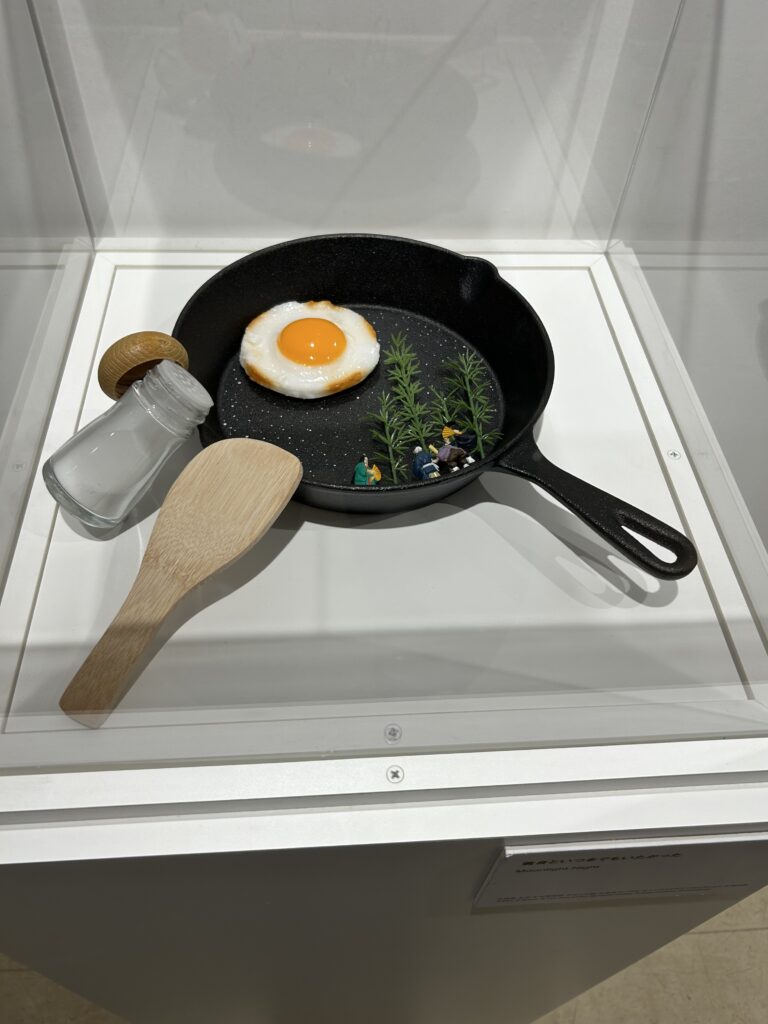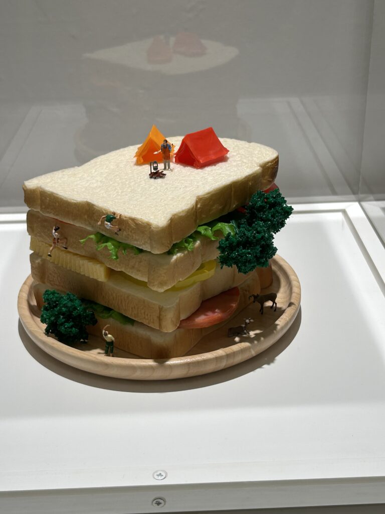 人物が小さい。そりゃそうだ。ブロッコリーは小さいのだから、木に見立てたら人物はとても小さくなるわけで。ミニチュア展だからね。私はミニチュア物が大好き。それに、食べ物を使った作品が大好物。