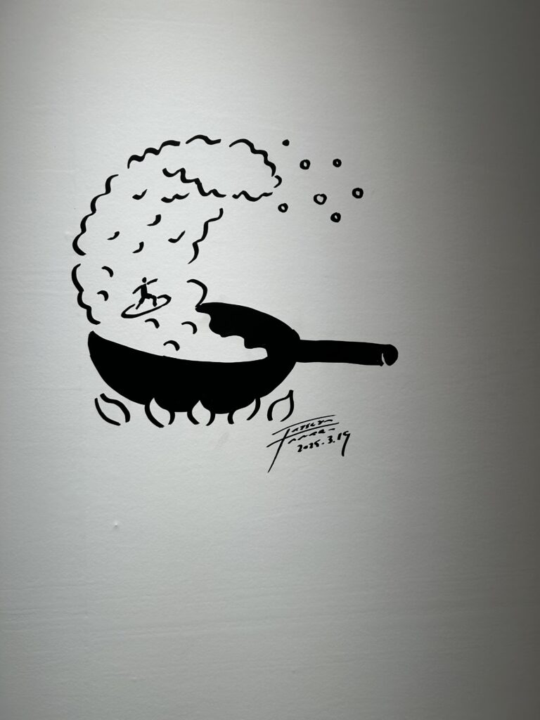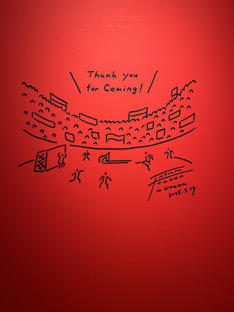 そうそう、初日に田中氏のサイン会が行われたとか。壁のあちこちに田中氏の物と思われるサインがあった。↑これは実際に壁に描かれた絵なのだが、実物も展示してあった。