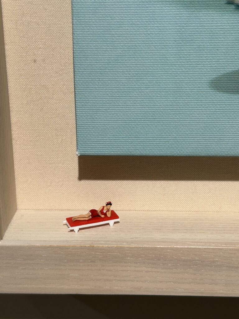 フレームの端っこに人形が添えてある。けっこう、こういう展示は多かった。